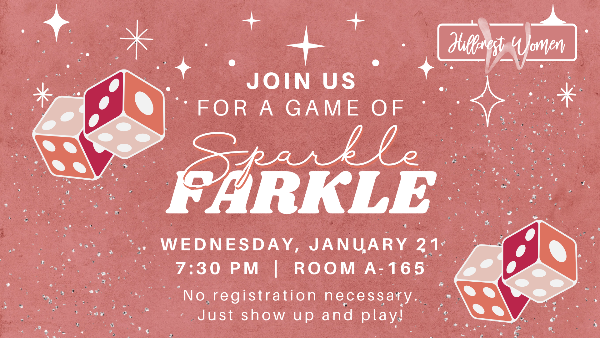 You are invited to join us NEXT Wednesday evening, 1/21/26, for a FUN game of Sparkle Farkle! We’ll meet in the Fellowship Center from 7:30-8:30 pm and play the game Farkle together. For extra fun, wear something that sparkles—even if it’s just your smile! Bring your own drink and (if you’d like) a snack to share. This will be a super casual gathering and a fun way to connect with your sisters at Hillcrest. As a bonus, you will also have a chance to learn more about Women’s Discipleship Hour and the new NO HOMEWORK study we will be starting on the names of God the following Wednesday. We hope you’ll join us!